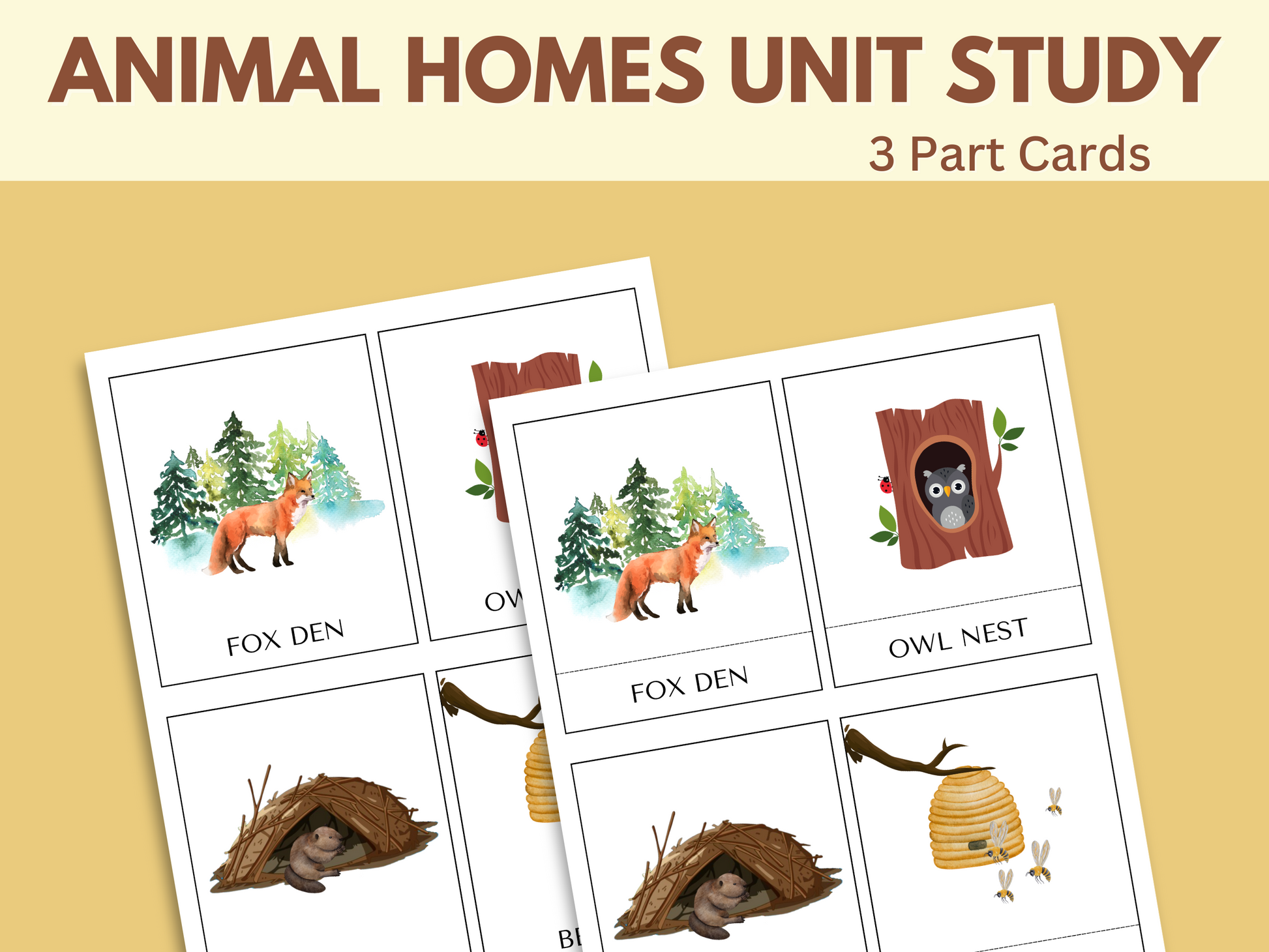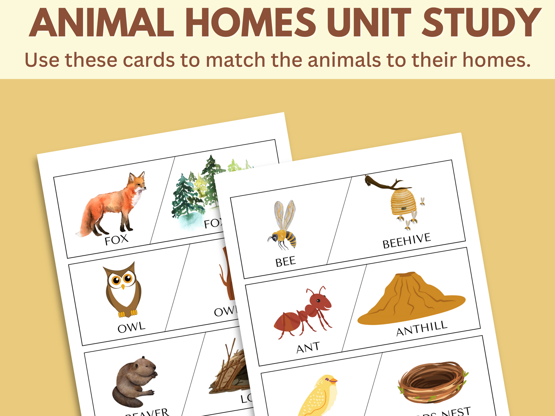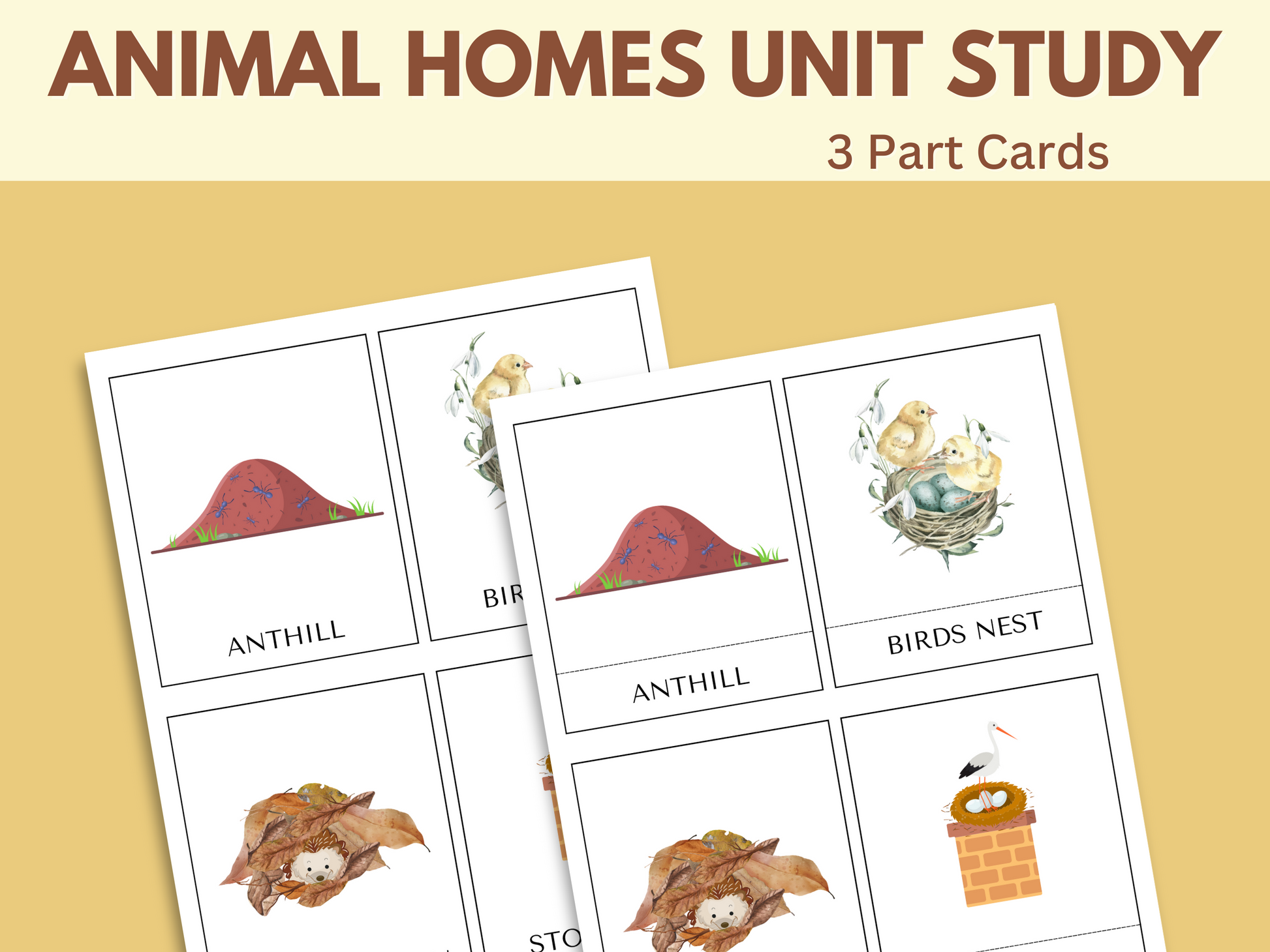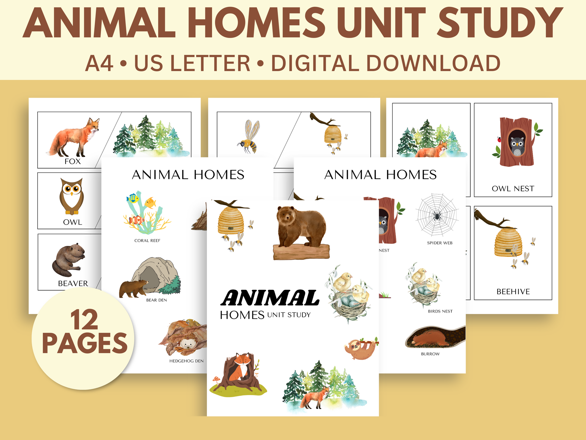 Engage your little ones in fun and educational activities with this Printable Animal Homes Unit Study. Perfect for preschool and kindergarten students, these Montessori materials help kids learn about animals and explore where do animals live. The set includes nomenclature cards, matching activities, and nature studies for hands-on learning at home. A great resource to teach your child about animals and their homes creatively and interactively! This is an Instant digital download.