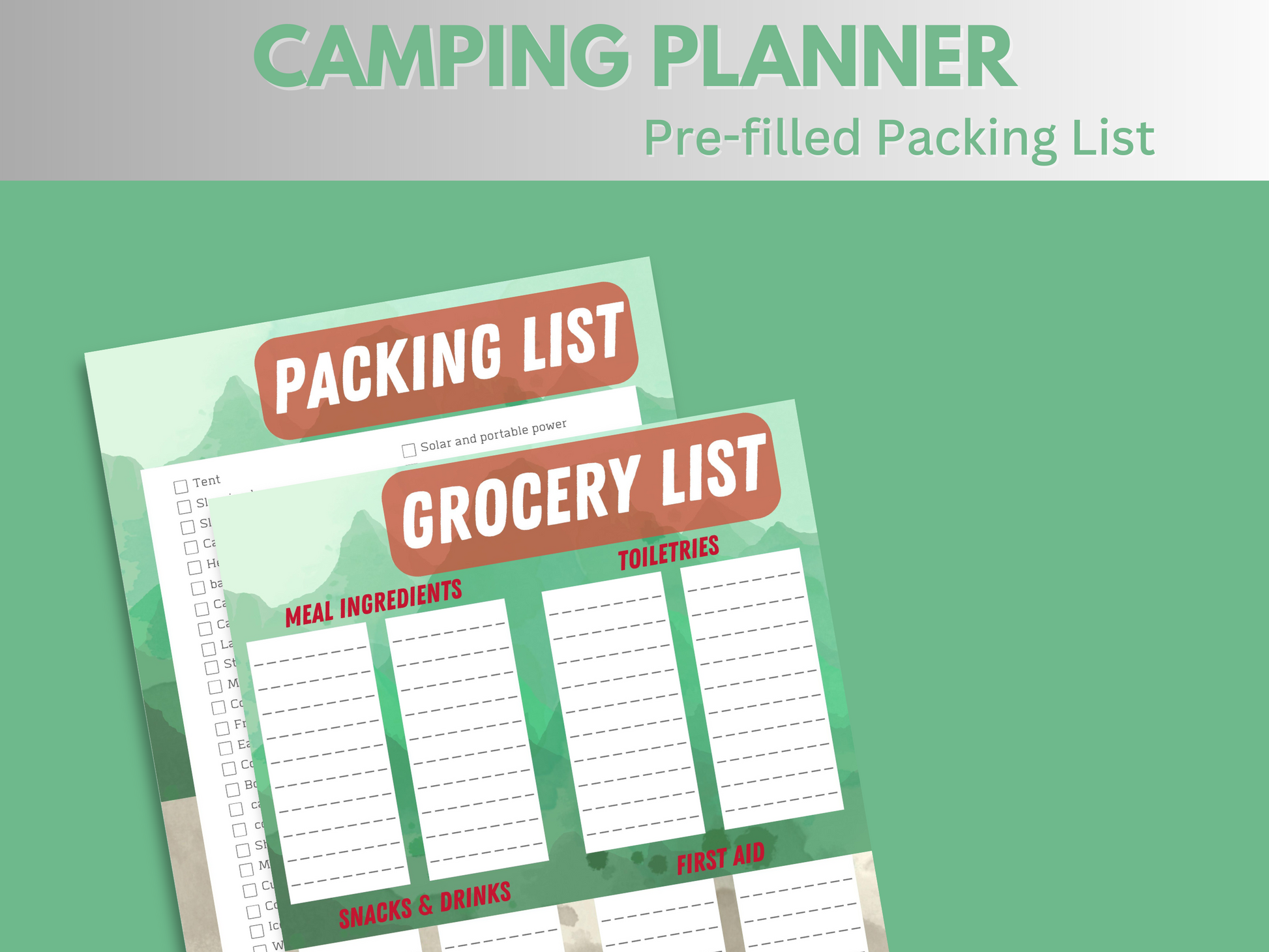 Headed on a camping trip and need to stay organized? Use my camping trip planner for camping worksheets like a camping menu planner printable, camping packing list, and more. This is an instant digital download.