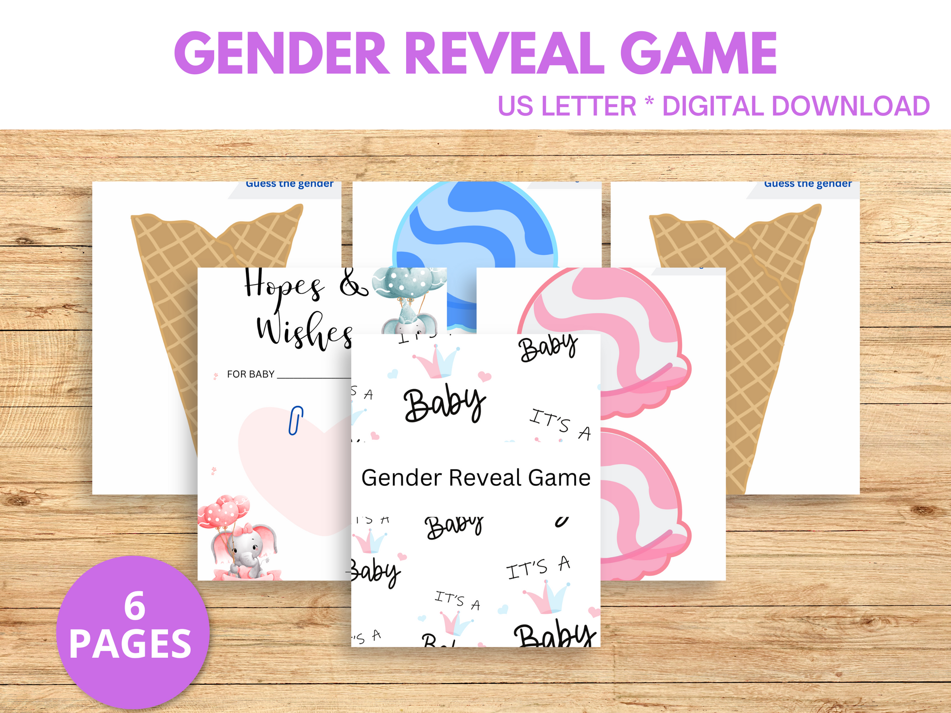 Have fun at your gender reveal party with this Ice Cream Gender Reveal Game. Who doesn't love pink and blue ice cream scoops?