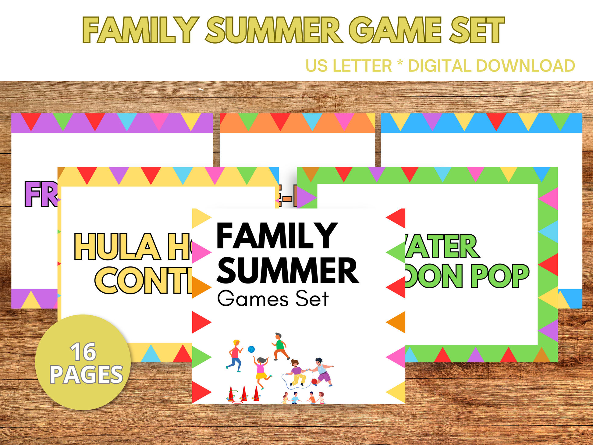 Use these summer printable family games to set up your stations for relay races, Dodge Ball, and much more.