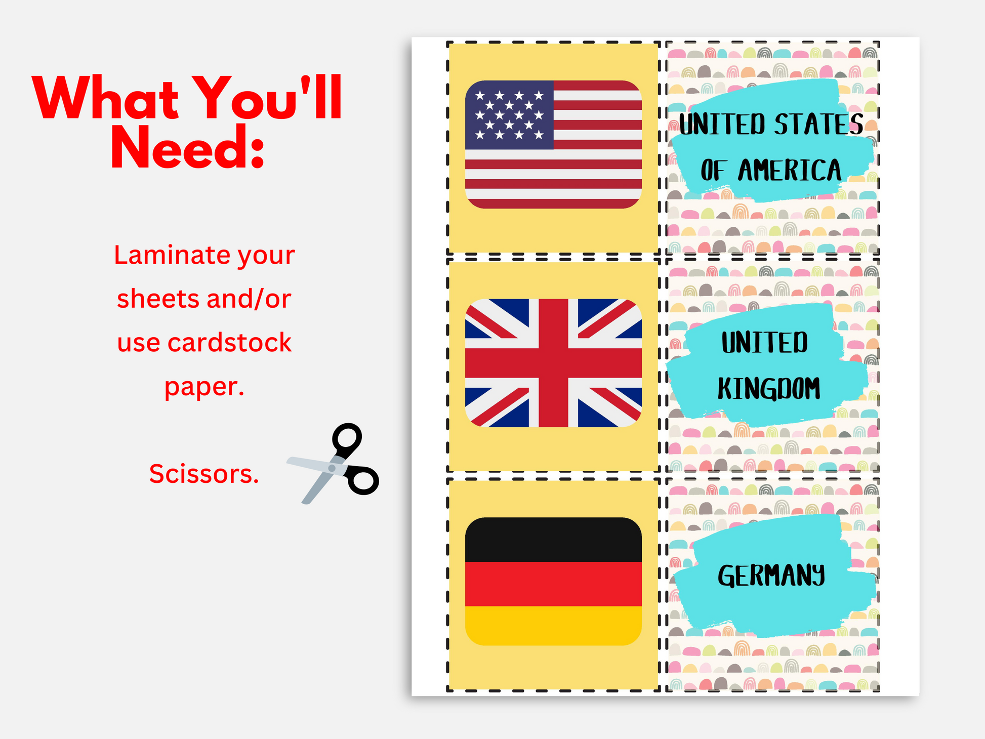 This colorful and fun Flags Around the World matching game is a great toddler activity, educational flash cards, and travel game to keep the kids busy. Have fun learning with these printable flags of the world.