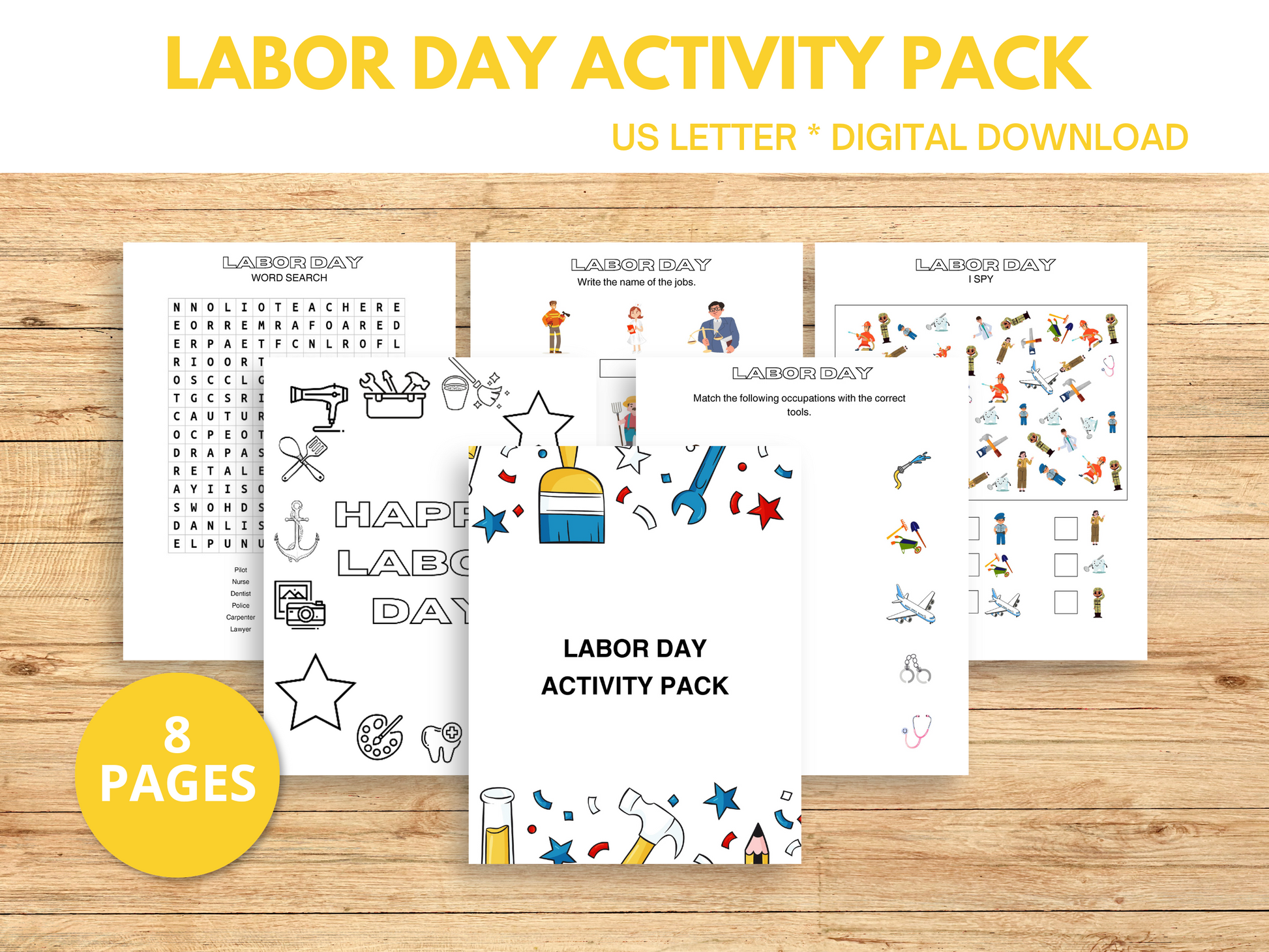 Teach kids about community helpers and the meaning of Labor Day with this fun, low-prep Labor Day Activity Pack! This printable includes 8 engaging pages that combine early writing, problem-solving, and themed fun—all in one easy download.