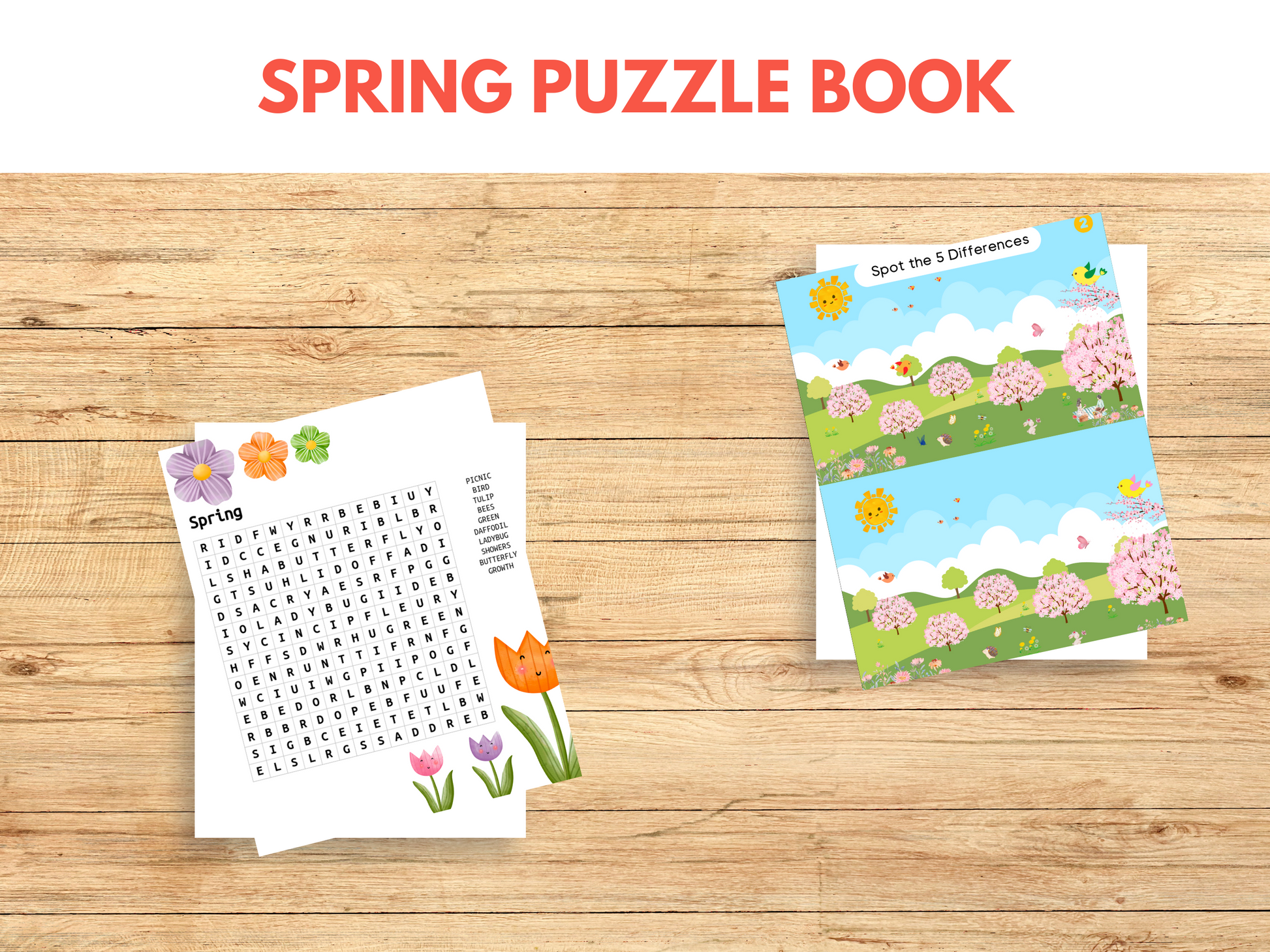 This spring puzzle book is a little more advanced for preschoolers but has the perfect spring worksheets for kindergarten and lower elementary kids.