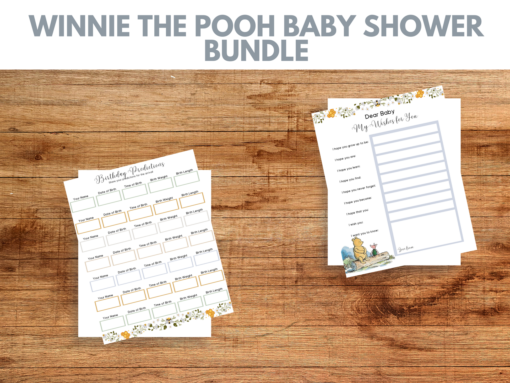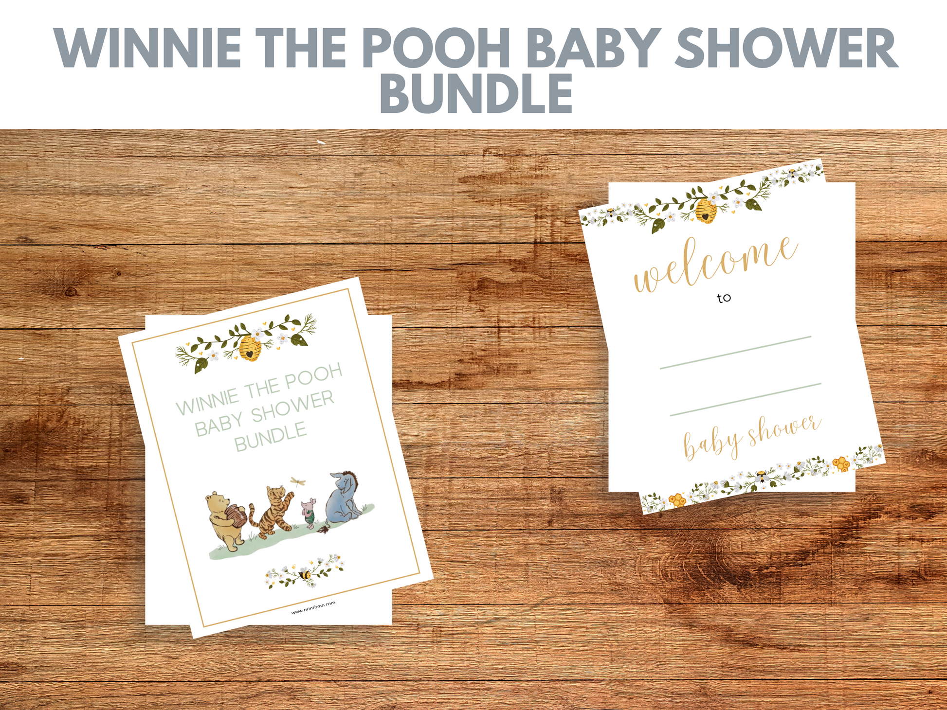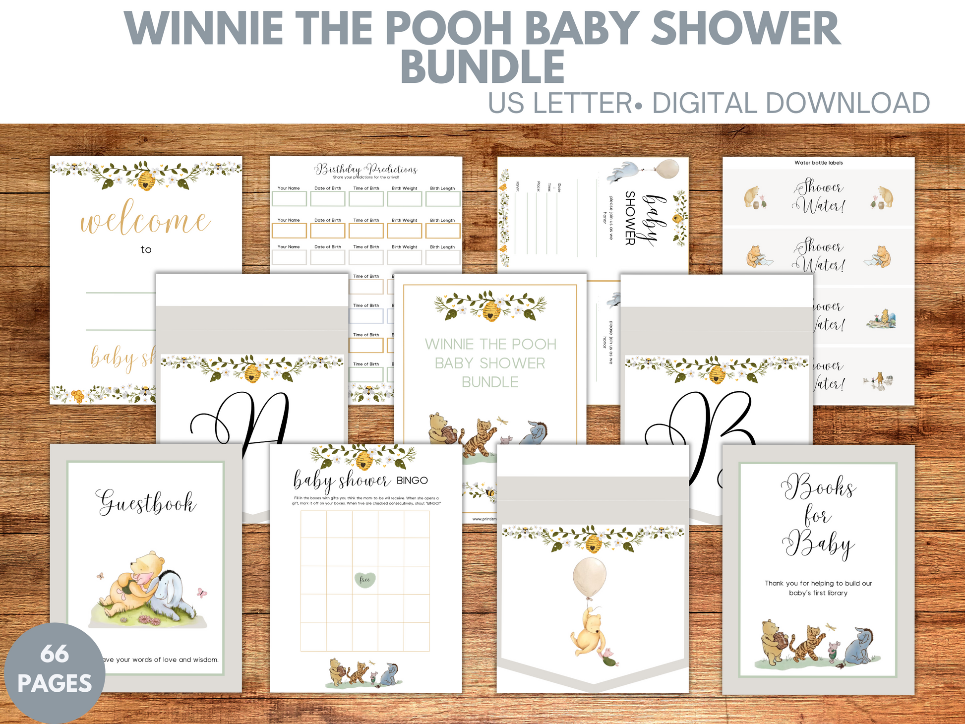Everything you need for a fun baby shower event is right here in this Winnie the Pooh baby shower printables bundle. This is an instant digital download of 66 pages.